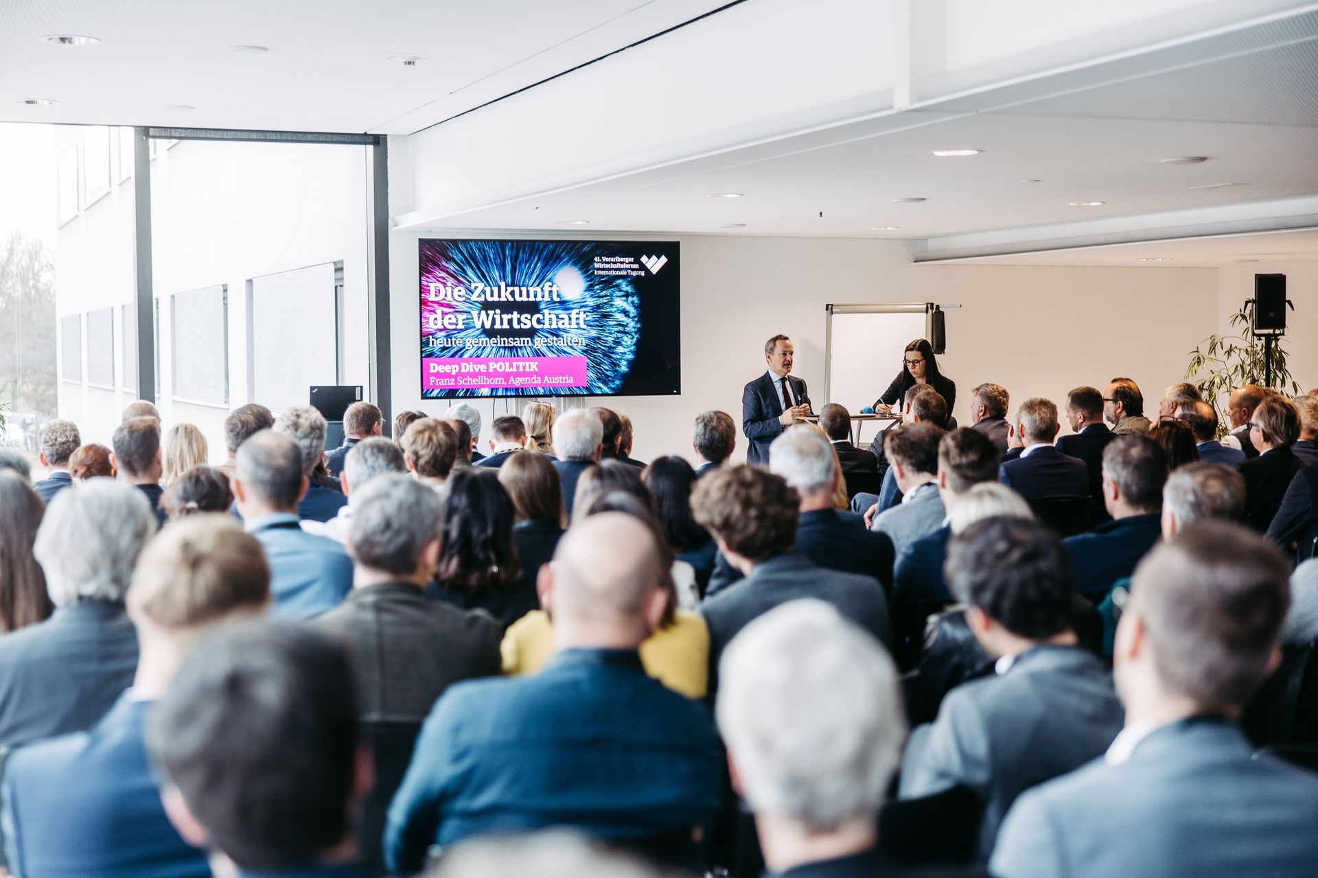 Im Standort-Panel diskutieren Franz Schellhorn (Agenda Austria), Marco Tittler (Wirtschaftslandesrat Vorarlberg) und Angelo Holzknecht (Hirschmann Automotive) über Chancen, Herausforderungen und die nächsten Schritte für einen starken Wirtschaftsstandort.